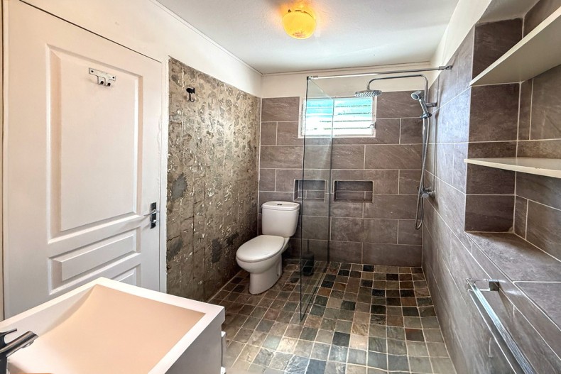To the back, there’s a fully equipped kitchen – perfect for cooking up local dishes like accras or a hearty colombo.