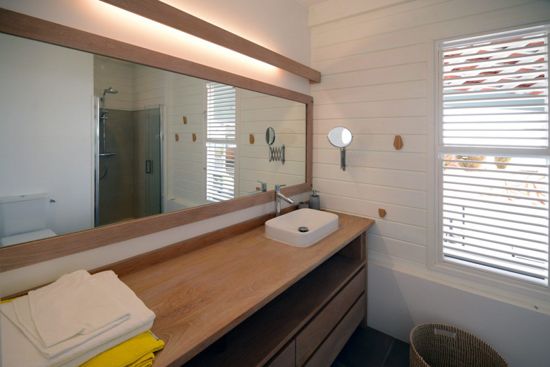 Villa très agréable à vivre, très confortable, bien ventilée, bien agencée et équipée. Peut-être prévoir des stores ou des grands parasols pour protéger la terrasse et l'espace repas du soleil.