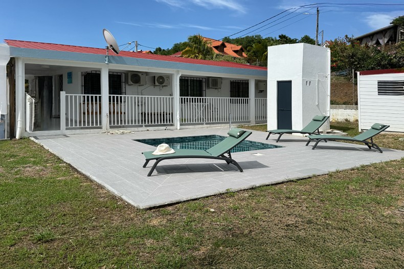 In Tartane, Villa Les Reflets Bleus opens onto a breathtaking view between the Atlantic Ocean and Mount Pelée. Relax on the wide terrace, swim in the pool, and enjoy an authentic, welcoming atmosphere. Here, every sunset is a show, every day a memory.