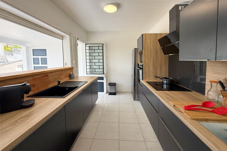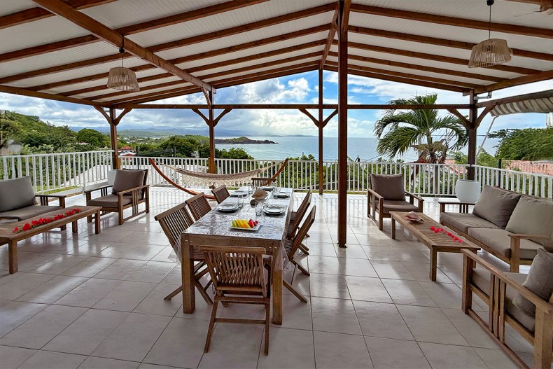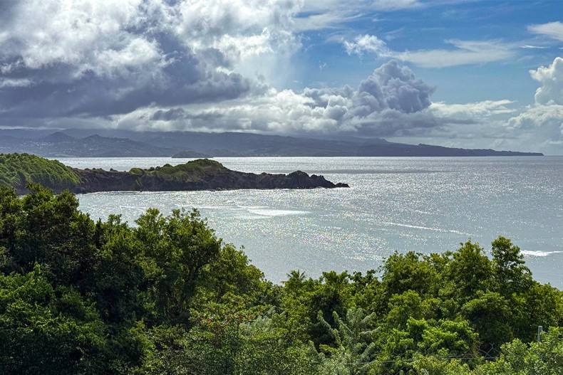 From the moment you arrive, you’ll be captivated by its panoramic sea view, which turns into a unique spectacle at sunset, when the waves shimmer with silver reflections. And when the clouds clear, the majestic silhouette of Mount Pelée appears on the horizon, offering a natural postcard that changes throughout the day.