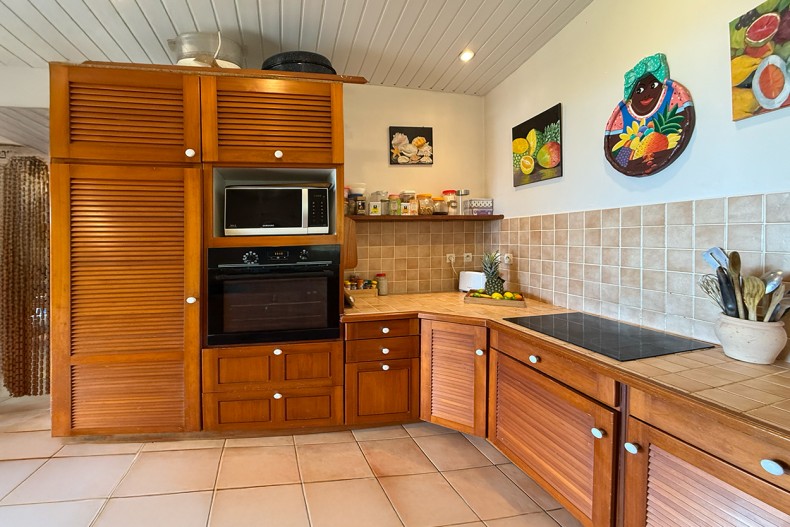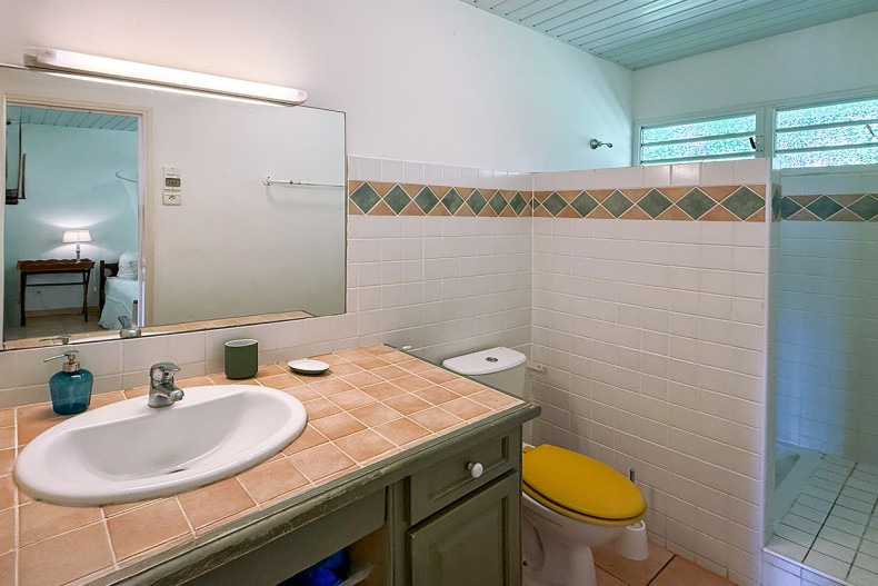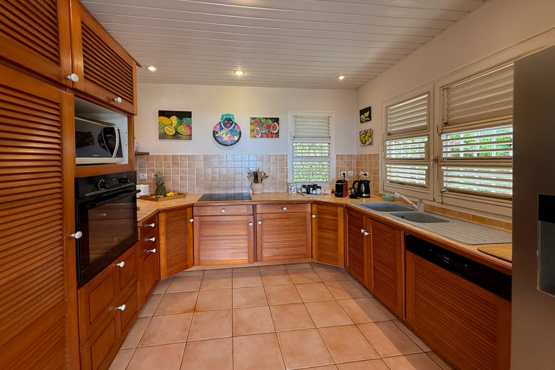 Le plus de cette maison: son immense terrasse extérieure avec son carbet qui nous a permis de vivre tout le temps dehors, ses 4chambres avec leur salle de bain pour un confort optimum pour une famille de 8pers, et sa piscine avec super vue.