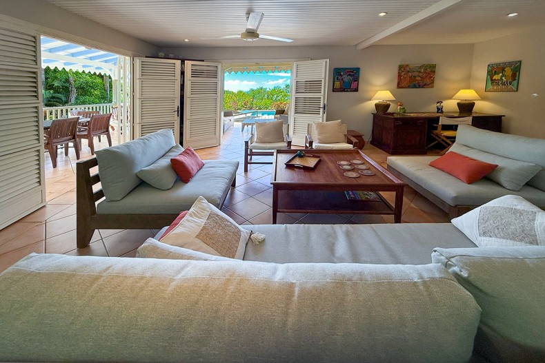L'emplacement : Très belle vue et a 200m de la plage (pas 50m), tres belle plage mais sans ombre. Le chemin du Raisinnier est tout simplement un enfer. On ne peut rencontrer, les gens se garent n'importe ou le 500 m pour sur rendre à la route principal peut prendre 15-20 min. Il y a un restaurant-bar, le Ti-Sable dont la musique tres forte vient enlever tout le charme et la tranquillité du soir. Les chambres: Les lits sont tres inconfortables en plus de craquer à chaque mouvement. Nous avons ajouté sur le dessus des lits les coussins des fauteuils pour essayé d'avoir un peut de moelleux. Salles de bain : deux des chambres se partage la toilette dans le couloir. Les douches sont à peine accessible, les entrées ont 30-40cm, il faut entrer de coté et il faut etre deux si vous avez un petit enfant. Exterieur: La terrasse et la piscine sont tres bien par contre dans l'après-midi il n'y a aucun coin d'ombre. Moustiques: la quantité de moustiques est invivable, nous avons tous (4 adultes, 2 enfants) attrapé la dengue. En résumé : Notre séjour n'a pas été agréable, la villa soit disant de luxe ne l'est pas. Aussi il n'y a pas de bacs à ordure donc il faut profité de la sortie des bacs du restaurant Ti-Sable. Le propriétaire n'a pas remplacé les bacs de la résidence lorsqu'ils ont été brulé (trop cheap). L'agente etait vraiment tres gentille et essayait vraiment de nous aider.