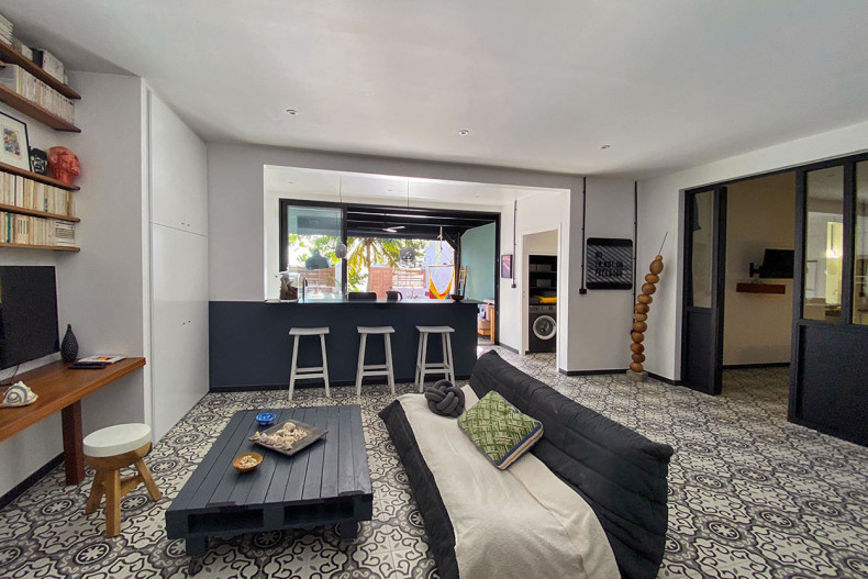 Ouvrir sa porte sur la plage et la mer des Caraïbes, pouvoir profiter de petits restaurants typiques, de commerces de proximité et d'un marché local sur une place de village authentique, vivre chaque soir un coucher de soleil différent. C'est ce que vous offre cette maison au style inatendu, conçue par une artiste plasticienne. Une grande cour recouverte de bois avec ses coins détente et sa salle à manger qui ouvre sur une cuisine ultra moderne. Trois chambres confortables colorées et reposantes. Deux salles de bain modernes. Un espace de vie avec un grand canapé. Le tout décoré des créations de la propriétaire ou d'amis artistes. Rien n'est laissé au hasard : éclairages subtils, linge de maison et vaisselles raffinés, petits espaces aménagés pour la tranquillité de chacun.