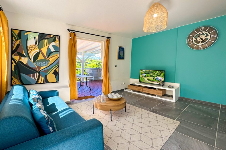 Juste au dessous du Ti Sunset, idéal pour des familles de 8 comme nous. Les 2 Ti Sunset sont dans le même esprit, très confortables et bien décorés. Vue dégagée sur la mer et la Montagne Pelée. On se sent très très bien, au calme dans la verdure, un véritable nid d'aigle. A recommander