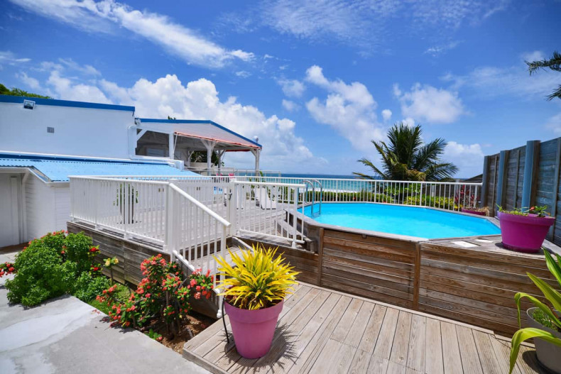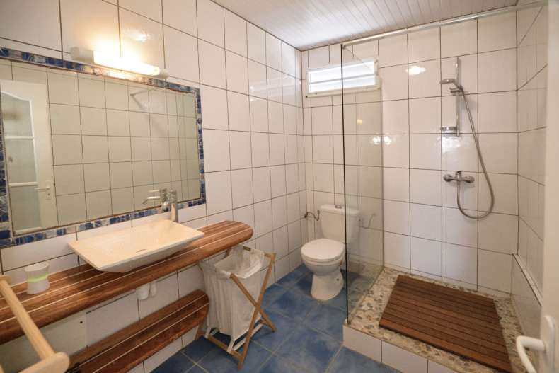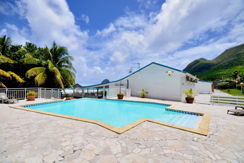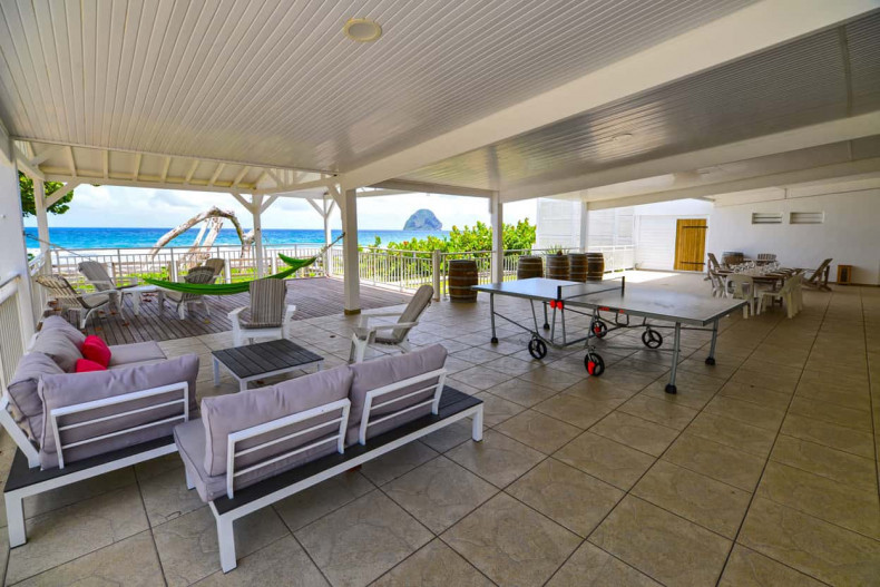 Idéale pour des vacances entre amis ou en famille vous disposez d'une salle pour chaque chambre et de vastes parties communes pour vous retrouver. Deux piscinee entièrement sécurisées et un grand jardin avec un accès direct à la plage du Diamant.