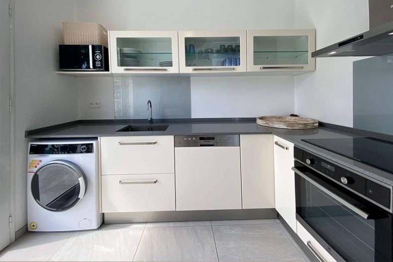 La location comprend : une terrasse, un salon, une cuisine équipée, 4 chambres climatisées et 2 salles d'eau plus un WC indépendant.