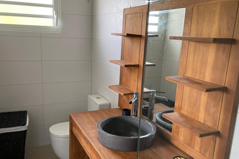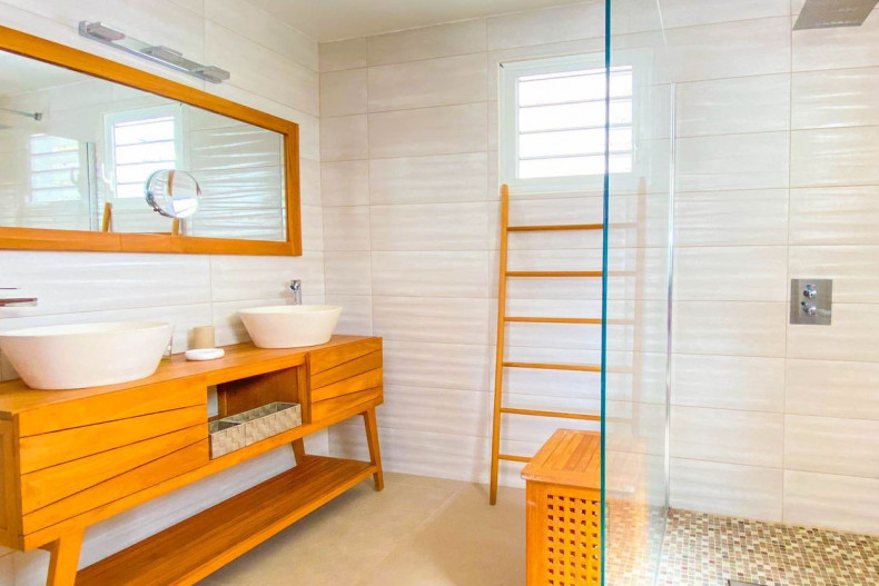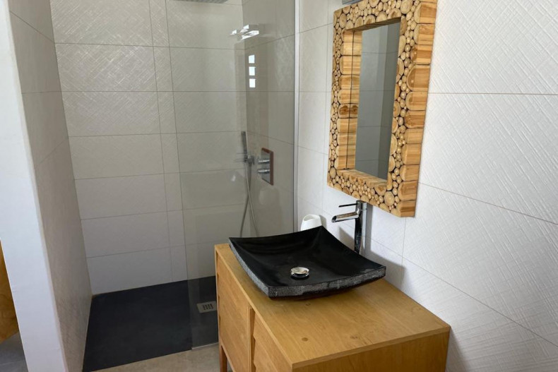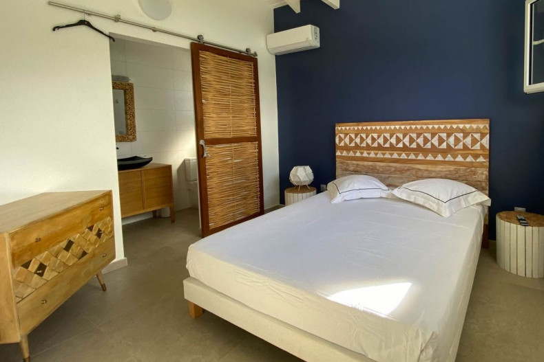la villa est composée de 4 chambres avec 4 salles d'eau, vous pourrez loger un enfant sur la mezzanine