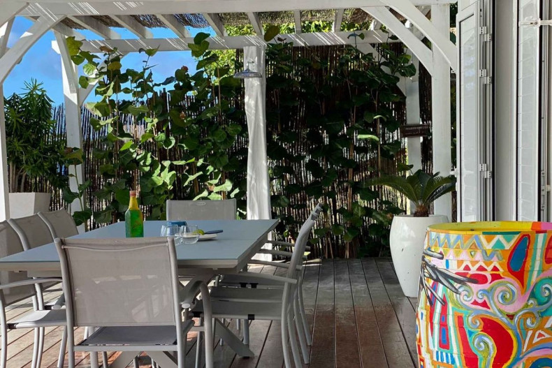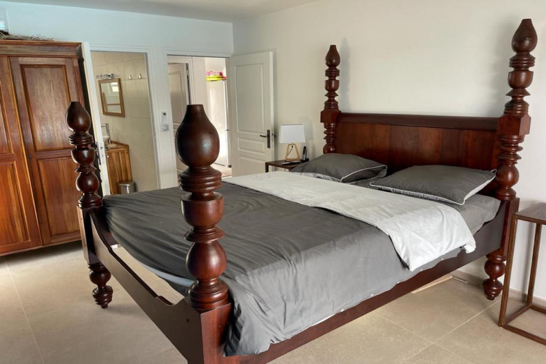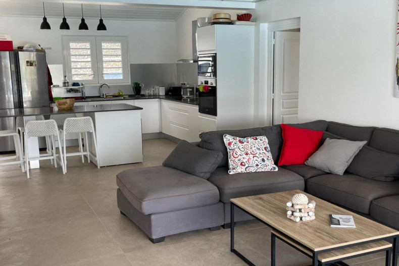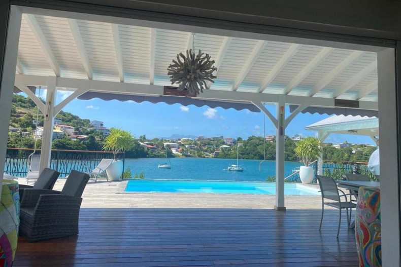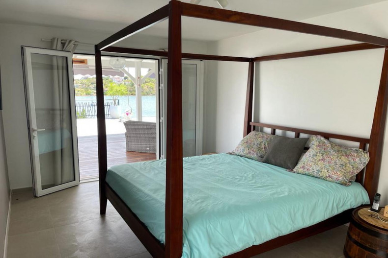 Accès à le mer depuis un ponton , vous pourrez nager dans les fonds blancs de la baie du Robert, location de bateaux sans permis possible loueur situé à proximité de la location.