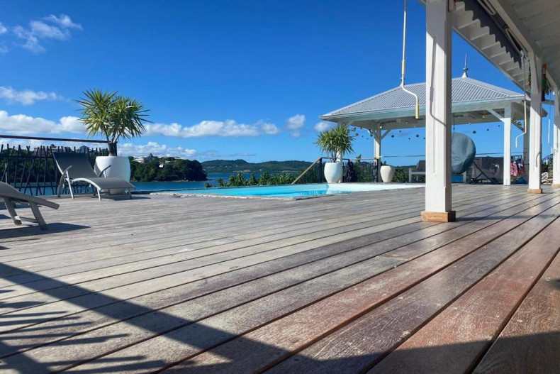 Villa les CORAUX au Robert piscine vue mer 4 chambres se situe est sur la commune du Robert, dans la région Nord Atlantique, en Martinique, à 10m de la mer.