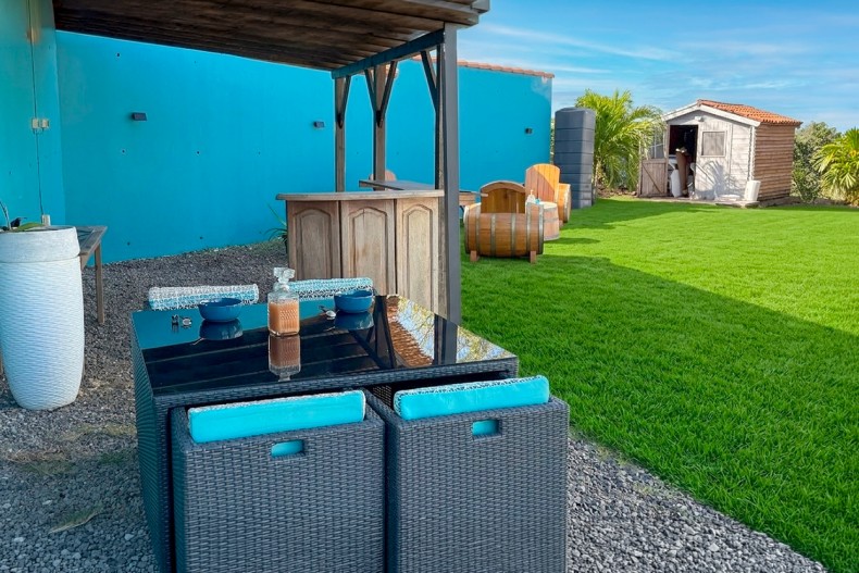 Nouvelle venue sur Locations Vue Turquoise, la villa Blue of Caribbean est la sœur et voisine, de Kaz Arôme. Les deux villas peuvent d’ailleurs être louées ensemble, ce qui en fait une solution idéale pour organiser de beaux séjours en famille ou entre amis tout en gardant chacun son espace.