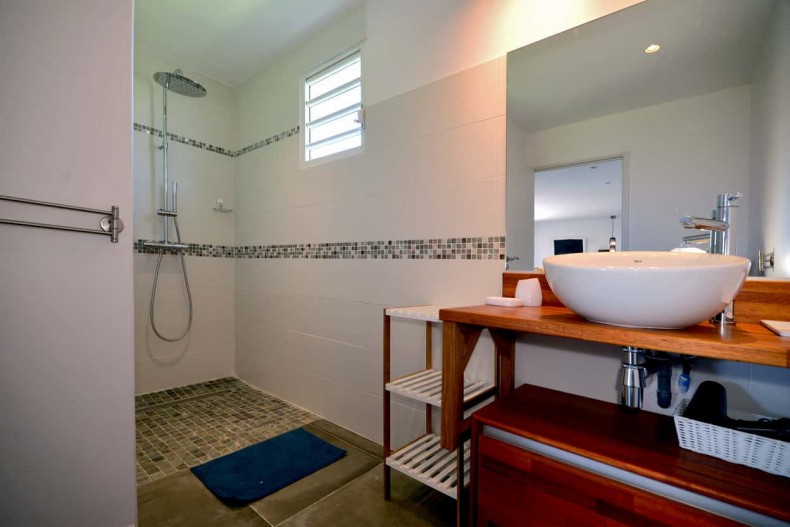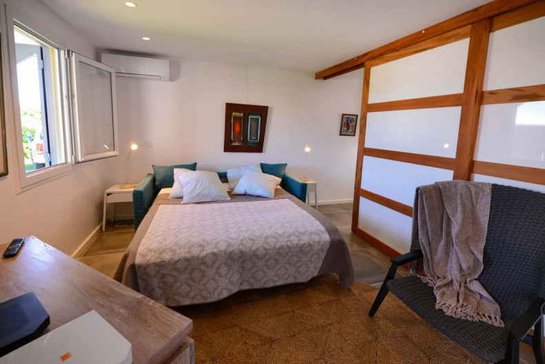 La villa accueille confortablement 6 personnes dans une atmosphère nature casual chic. Une première chambre climatisée se compose d’un espace nuit avec lit double, d’un dressing et d’une salle d’eau privée. Les deux autres chambres climatisées qui se partagent une salle d’eau et un WC indépendant. Chaque chambre est équipée d’une télévision et d’un dressing. L’espace de vie est une continuité « In door – Out door » apportée par les grandes ouvertures de style créole : un salon cosy et une cuisine moderne et fonctionnelle s’ouvrent sur la terrasse et le jardin.