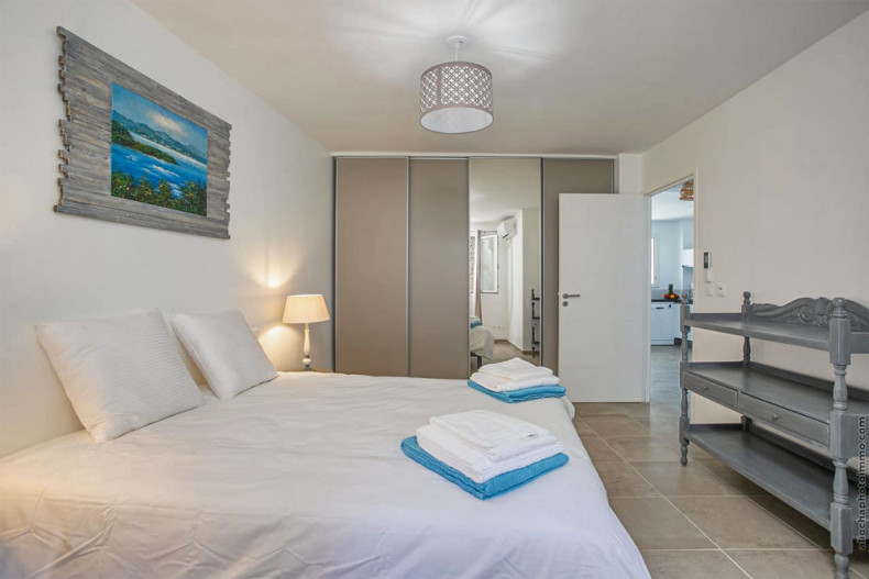 La location comprend: 2 chambres et deux salles d'eau, un salon ouvert sur la cuisine et la terrasse