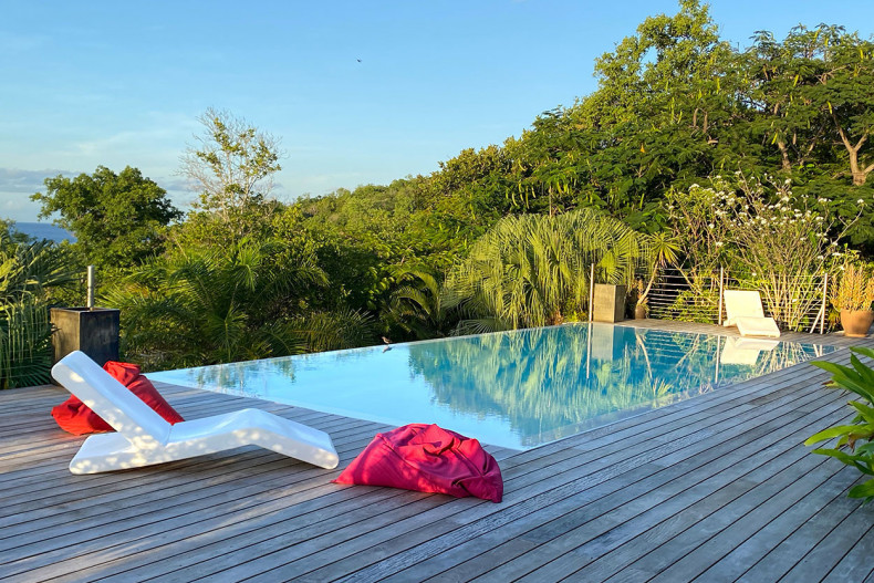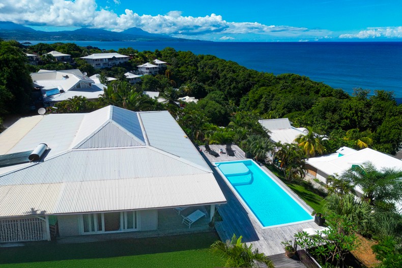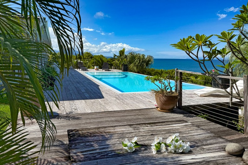 La Superbe Villa du Surf, piscine miroir privée à débordement, vue mer à 180¨ est une location située à Anse Bonneville, Tartane, dans la région Presqu'île de la Caravelle - nord Atlantique, en Martinique, à 70 m de la mer.