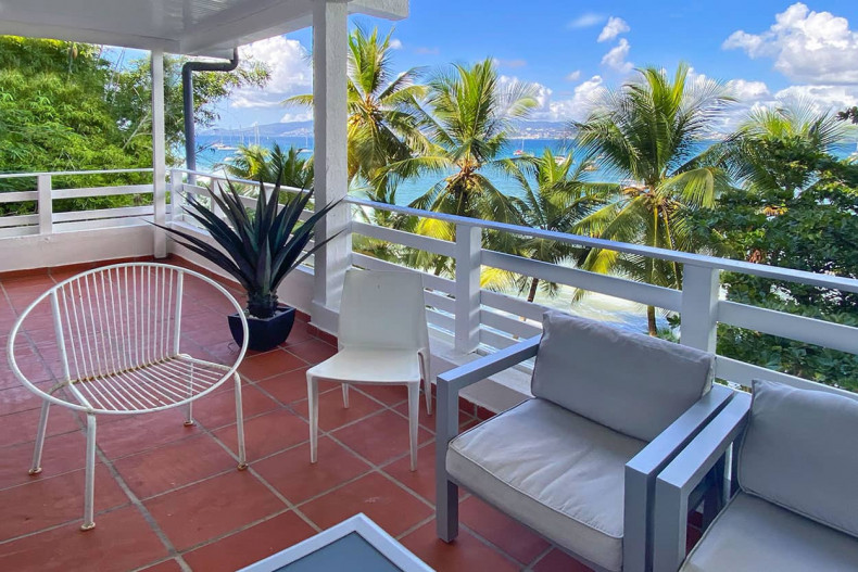 Superbe haut de villa sur la plage de l'Anse à l'Âne pour 8 personnes accès plage en bas du jardin