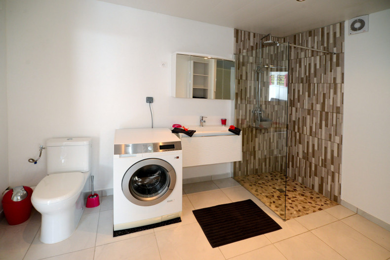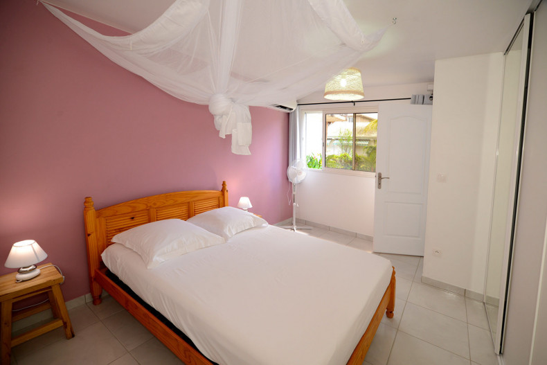La superficie habitable est de 40m2, comprenant: un jardin clos, un salon avec un canapé convertible, une cuisine équipée ouverte sur la pièce de vie, une chambre climatisée et une salle d'eau avec machine à laver le linge.