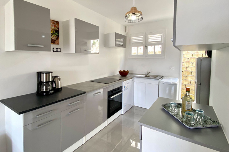comprenant: une terrasse, un salon, une cuisine équipée, 2 chambres climatisées et un canapé convertible dans le salon, une salle d'eau équipée d'un douche un WC et une vasque