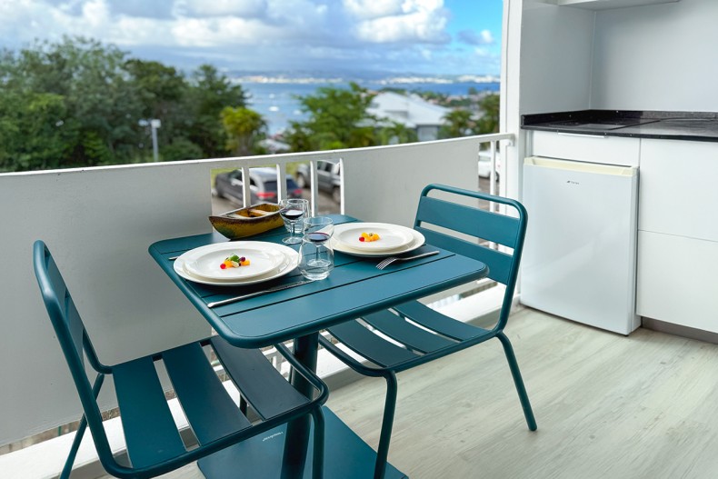 Sur la terrasse vue sur l'Anse Mitan