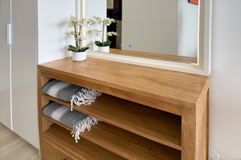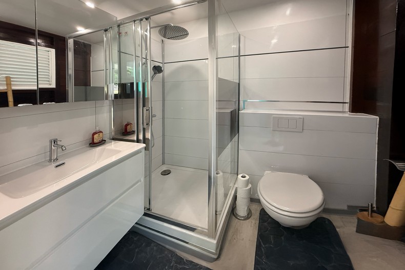 La salle d’eau est conçue dans un esprit luxueux, avec des finitions haut de gamme et une douche spacieuse. Les produits d’accueil sont soigneusement sélectionnés, ajoutant une touche de confort et de bien-être à votre séjour.