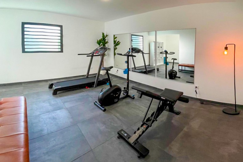 Salle de sport climatisée, dotée de matériel quasi professionnel